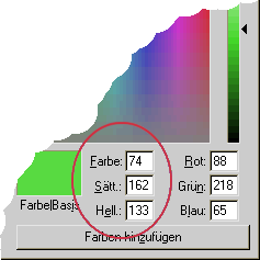 // Farbe, Sättigung, Helligkeit). Mit dem nachfolgenden